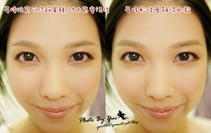 眉峰太前面會讓人感覺哪裡怪怪的、有點衰的樣子...(請見下圖左)