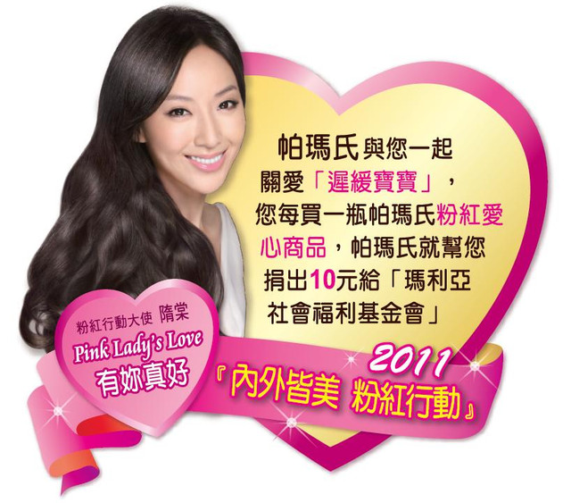 身為帕瑪氏護髮產品代言人的隋棠,也自發性地擔任Pink Lady公益大使,不收取任何活動代言費用,