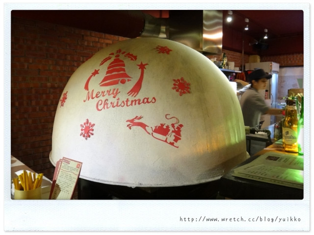 因為接近聖誕節的關係,烤披薩的窯也被裝飾得超級可愛! XD