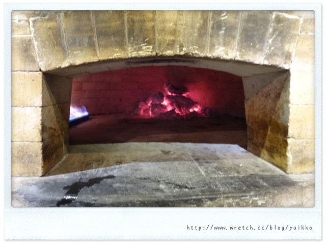 窯內溫度據說有三百多度,每個披薩放進去大約五分鐘就烤好了!