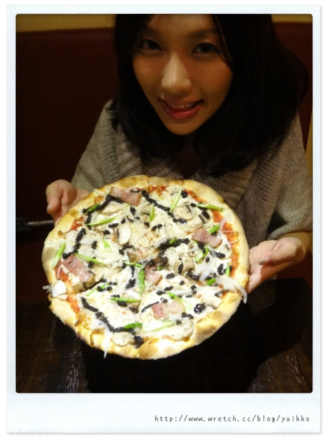 這是我們點的松露蘆筍披薩,上面黑黑的就是松露醬!