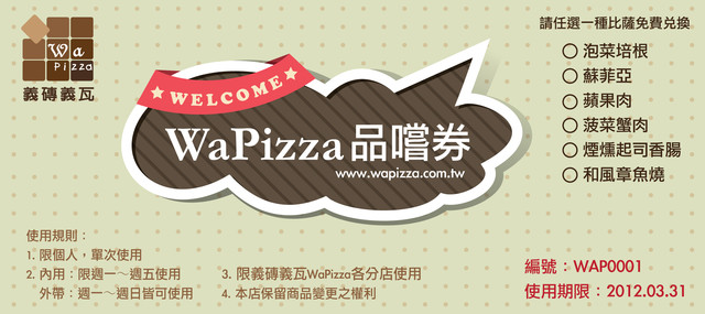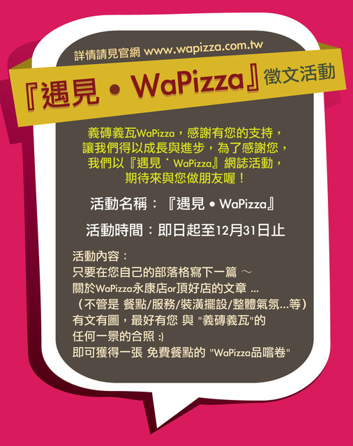 只要來WaPizza手工窯烤比薩 永康店or頂好店用餐