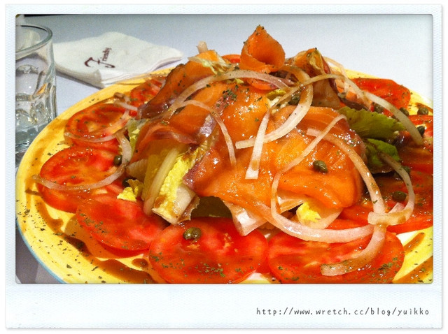 這份燻鮭魚沙拉印象中才300出頭,但份量超級大....<囧>