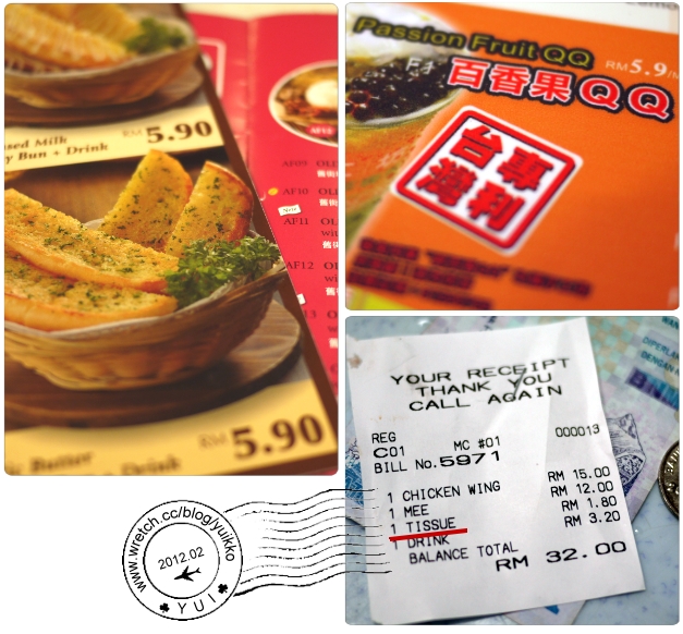 一塊馬幣約等於10塊台幣,換算起來左邊這幾片麵包加飲料要60塊!