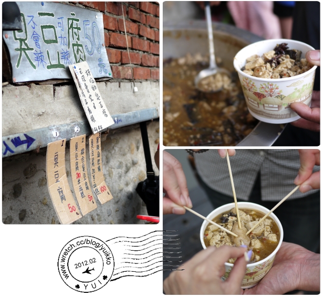 我們來來回回找車位的途中看到一個腳踏車推的攤位,賣臭豆腐的,生意超級好!
