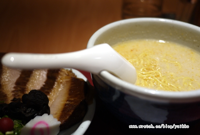湯看起來還不錯,不是我想像的很清澈的鹽味,而是類似豚骨那種...