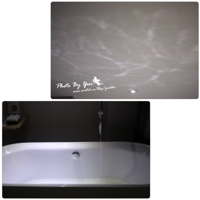 浴缸在放水的時候,天花板就會出現美麗的水波紋,很有情調呢!
