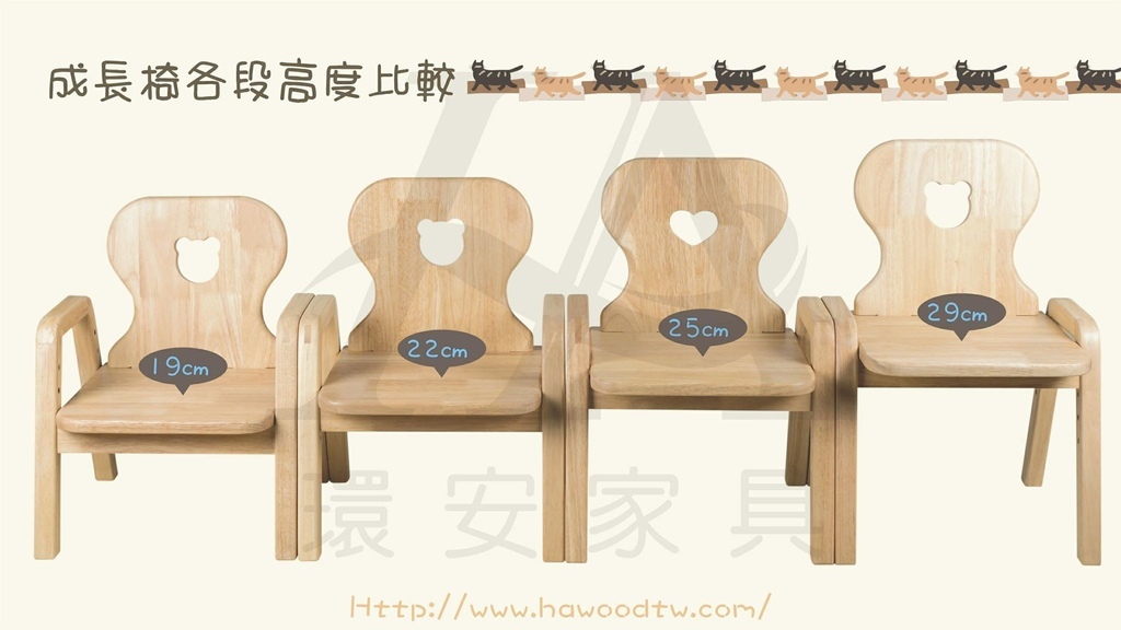 椅子有四種高度:19 / 22 / 25 / 29cm,適合 140cm 以下兒童