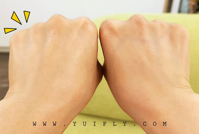 試在手上叫社長猜一下哪隻有擦簡單被識破,因為實在太咕溜滑嫩了