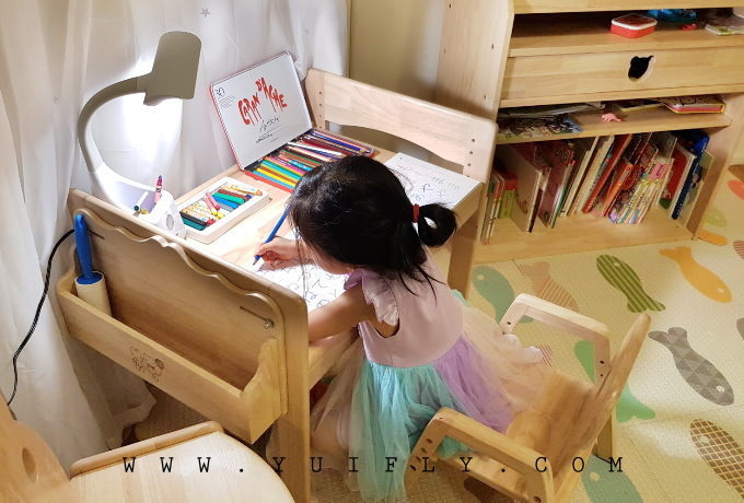 塔口醬兩歲多就喜歡坐在自己的書桌前塗鴉,現在三歲了,畫畫、寫字的時間更長,
